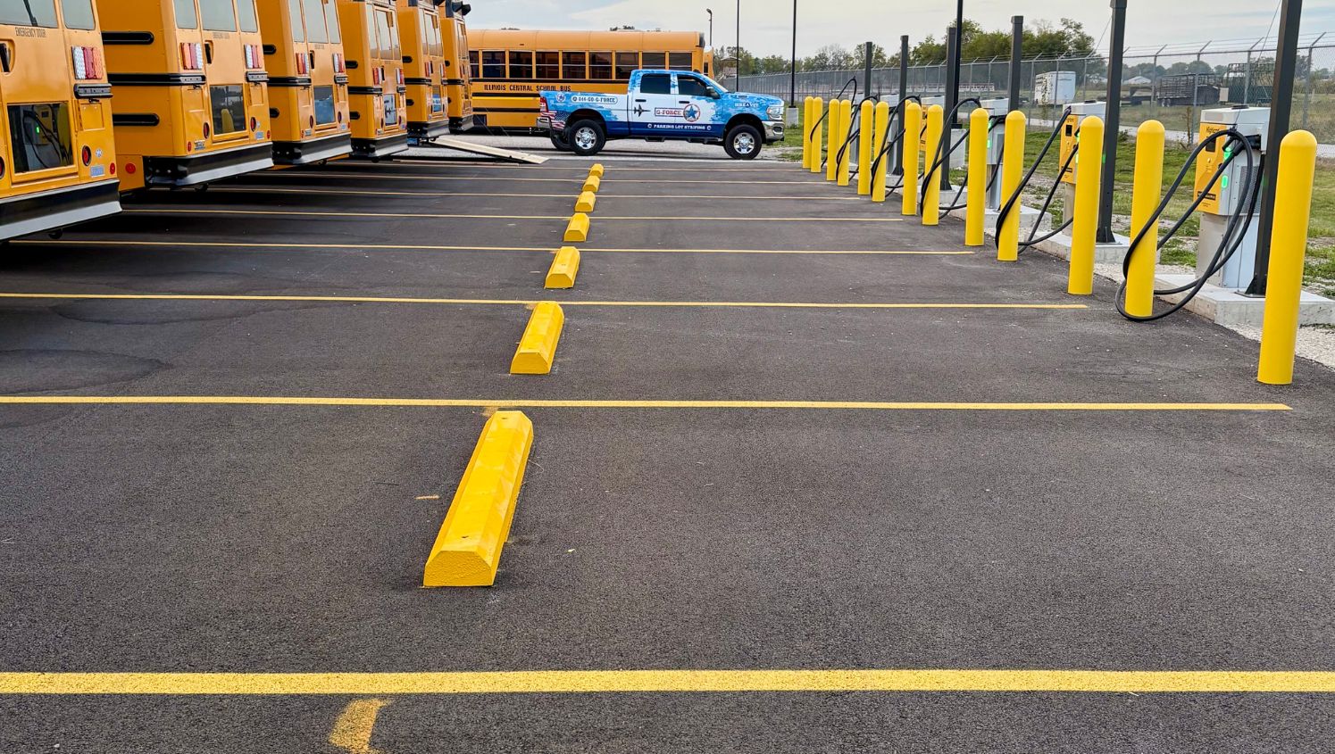 Veteran-owned G-FORCE St. Louis offers quality pavement marking, parking lot striping, and parking lot sealcoating services. Our crew will improve the safety and appearance of your parking lot, as well as ensure you're ADA compliant with accessible stalls and signage. G-FORCE also offers bollard installation, asphalt sealcoating, fire lane marking, wheel stop installation, and EV charging bay markings.